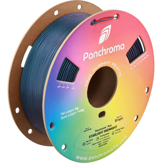 Panchroma PLA Starlight Medianoche 1.75mm 1Kg pertenece a la familia de filamentos para impresión 3D de Panchroma. Está fabricado con materias primas de primera calidad para garantizar un rendimiento, fiabilidad y acabado excepcionales. Este PLA ofrece una experiencia de impresión fluida y consistente, ideal para todo tipo de proyectos creativos.